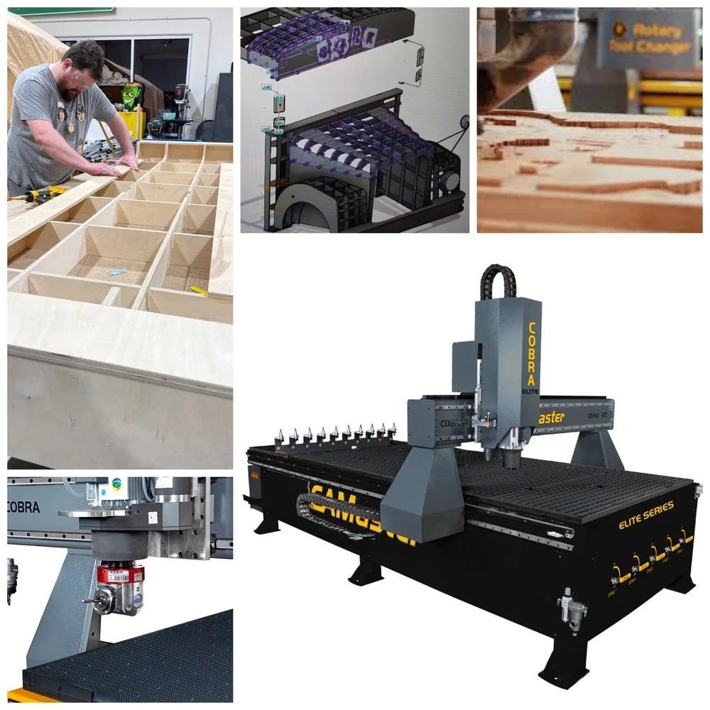 Adrenalin’s in-house 3+1 axis CNC ensures our reliance on no one, but ourselves ensuring deadlines & quality assurance. The Cobra Elite CNC Router is a perfect mix of precision engineering and industrial performance with a 12 HP HSD spindle, heavy, all-steel frame that ensures rigidity and durability, steel gantry and gantry supports, Brushless digital AC servo drive system, 25 MM precision rails and bearings, High precision planetary gearboxes, 1500 IPM cut speed and 2500 IPM rapid traverse speed.